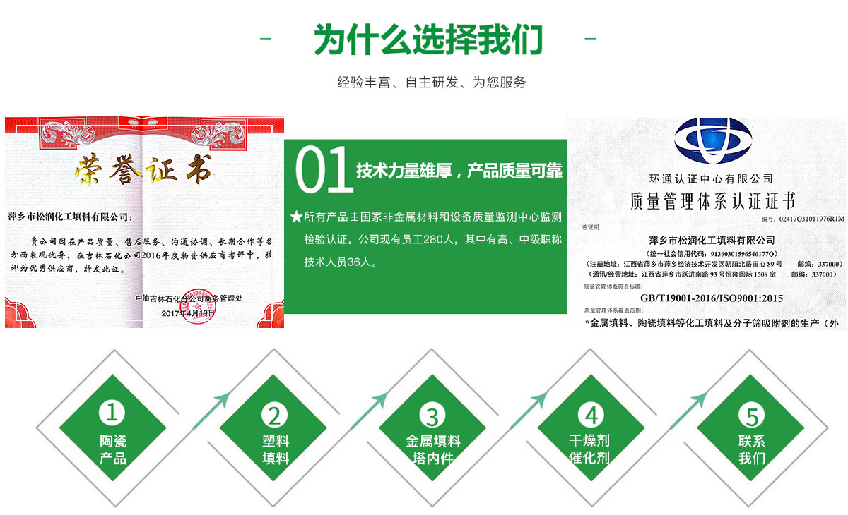 萍鄉(xiāng)市松潤化工填料有限公司位于江西省萍鄉(xiāng)市國家經(jīng)濟(jì)開發(fā)區(qū)西區(qū),是專業(yè)生產(chǎn)、經(jīng)營陶瓷、聚丙烯、金屬填料、塔內(nèi)件、水處理濾板、濾管、濾料、瓷球、分子篩、催化劑、活性炭、蜂窩陶瓷、瓷質(zhì)耐磨托輥等系列產(chǎn)品的民營企業(yè)。所有產(chǎn)品由國家非金屬材料和設(shè)備質(zhì)量監(jiān)測中心監(jiān)測檢驗(yàn)認(rèn)證。公司現(xiàn)有員工280人,其中有高、中級職稱技術(shù)人員36人。工藝先進(jìn),技術(shù)力量雄厚,產(chǎn)品質(zhì)量可靠,配...